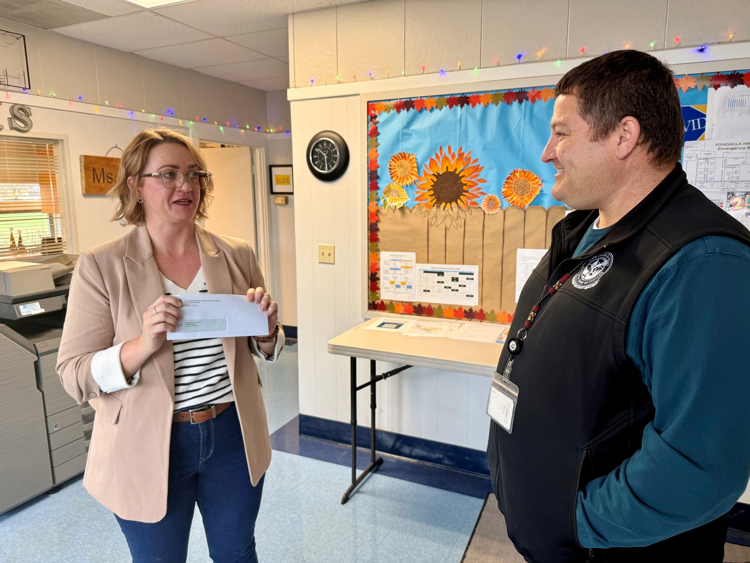 Chelsea Ross, Principal of Yoncalla High School and Education Programs Officers Jesse Jackson
