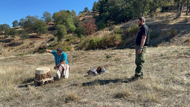Cow Creek Tribal Fire Management personnel conducted a prescribed cultural burn on Tribal property located near Edies Lane in Myrtle Creek on September 23. The 70-acre lot, which is used primarily for grazing, had recently been treated for blackberry overgrowth and weeds. Tribal Natural Resources staff requested the remaining brambles and grass be burned, a practice utilized by Native American Tribes to rejuvenate their lands and restore balance to the soil. Fire Management personnel created a safe and effective burn plan for the operation, considering various factors such as landscape, fuel loading, weather conditions, and humidity levels, and determined the morning of September 23 to be the optimal burn window. Cow Creek Tribal member and Education Officer Jesse Jackson provided a cultural blessing for the burn prior to ignition, ensuring a safe and efficient operation. The entire burning operation took approximately two hours, with no escaped fires and no injuries to personnel.